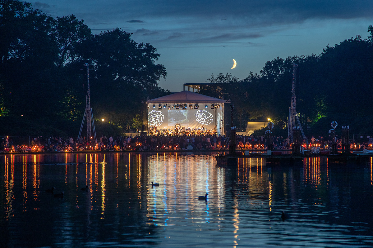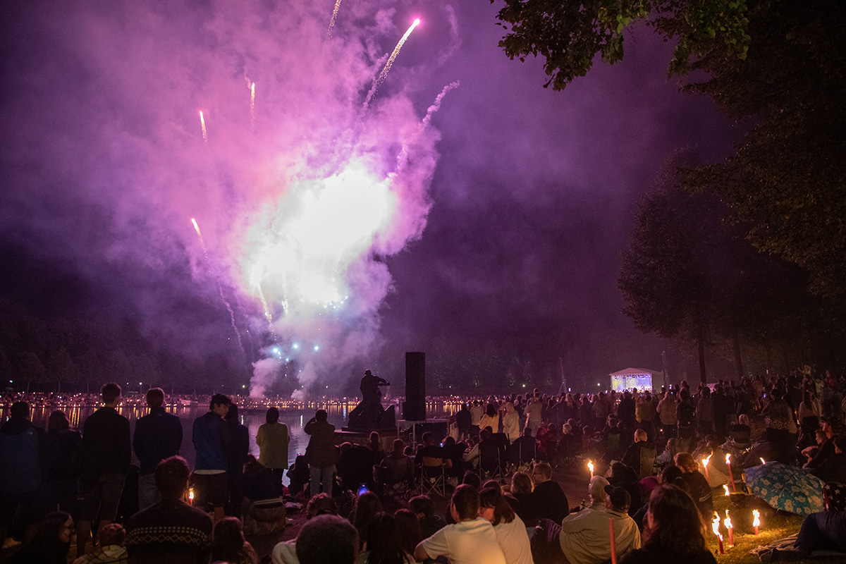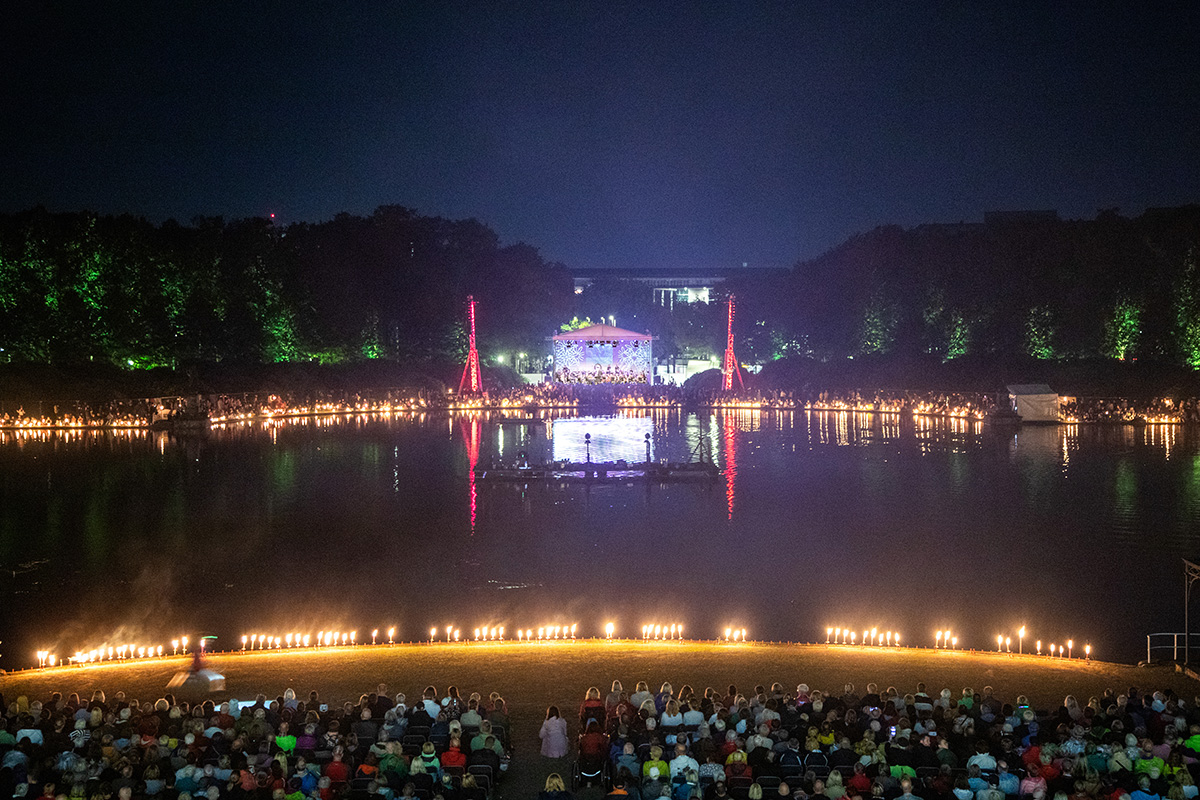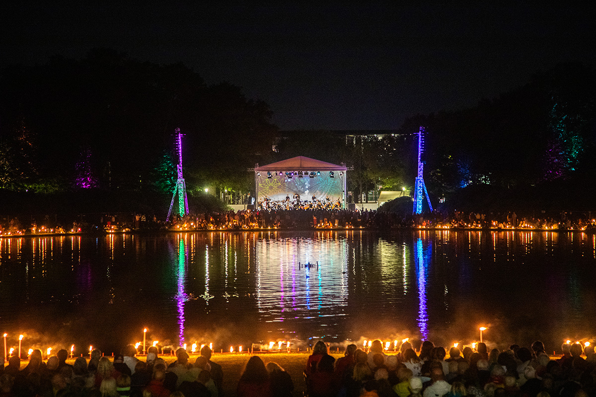 Ein Picknick im Fackelschein zu klassischer Musik und als Höhepunkt ein großes Feuerwerk auf dem See, das ist die Atmosphäre bei Musik und Licht am Hollersee. Auf mitgebrachten Decken und Klappstühlen genießen große und kleine Gäste im Schein der Lichter bekannte klassische Stücke.