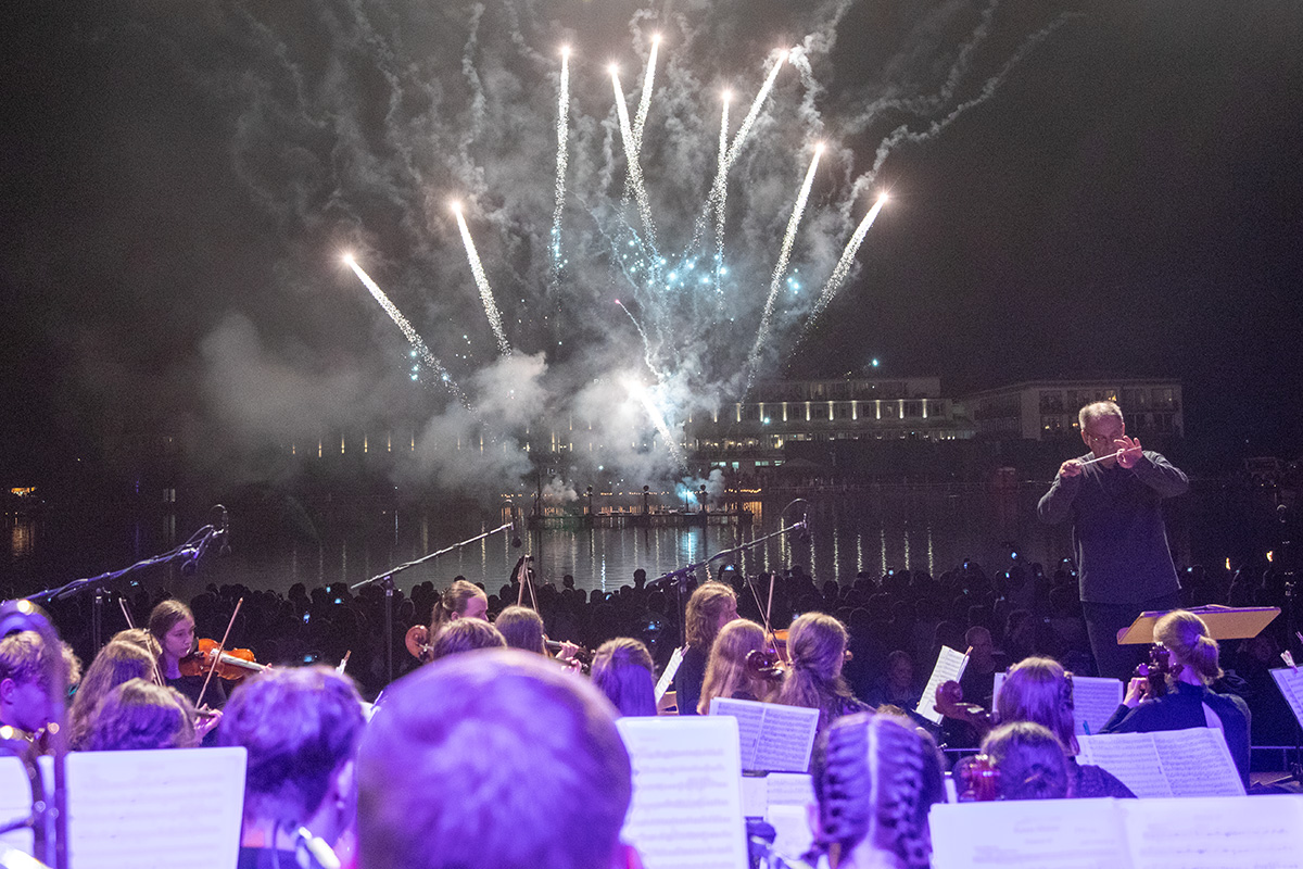 Unter den Orchestermitgliedern finden sich zahlreiche Preisträger des Wettbewerbs „Jugend musiziert“ und angehende Berufsmusiker. Mit ihrem beschwingten Programm zeigt das Orchester bei Musik und Licht sein Können und begeistert unter der Leitung von Martin Lentz seine Zuhörer. Den stimmungsvollen Abschluss des Konzertes bildet traditionell das gemeinsam gesungene Lied „Der Mond ist aufgegangen“.